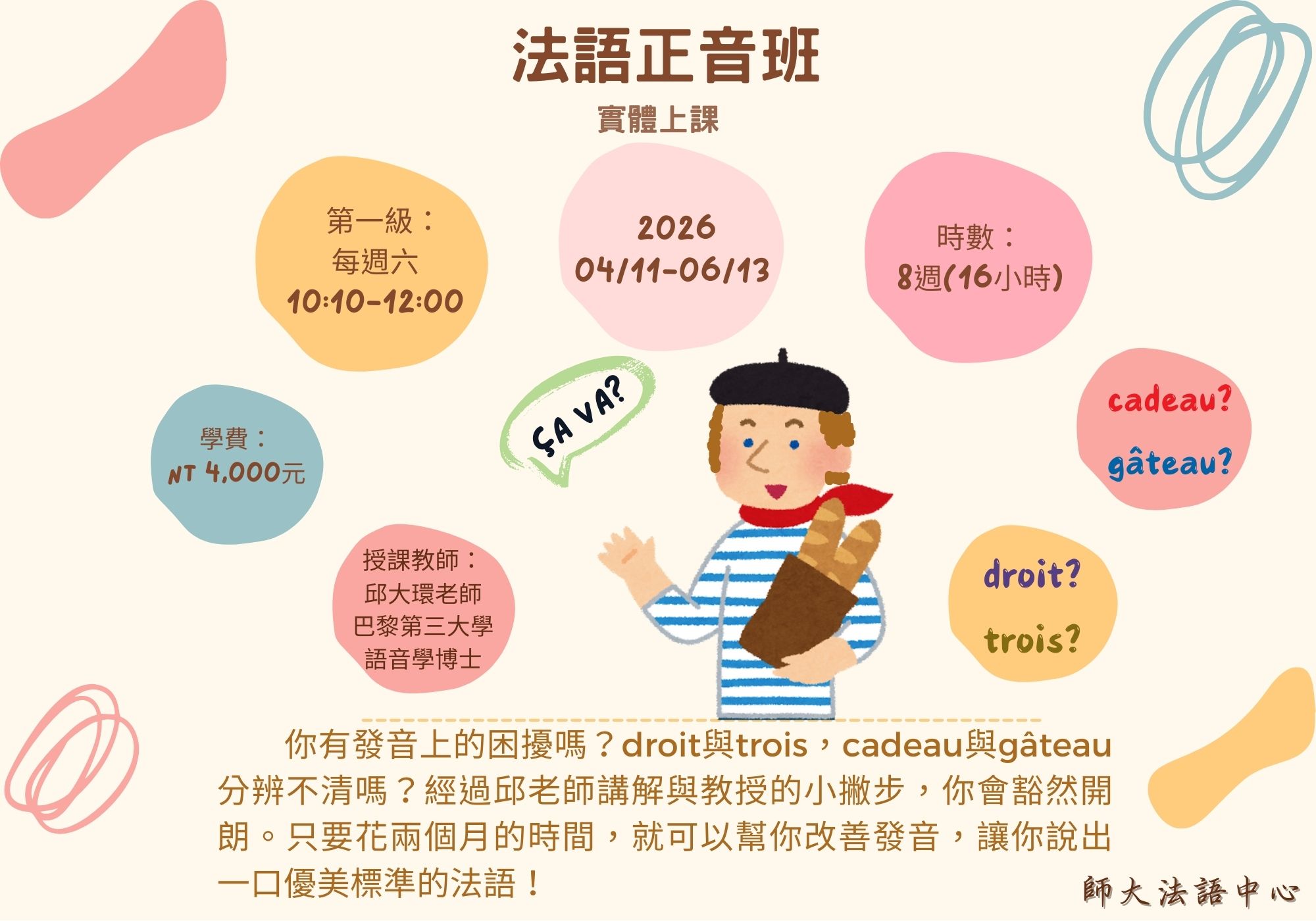 臺師大法語系統 115 年行事曆,相關課程資訊請參閱下方行事曆