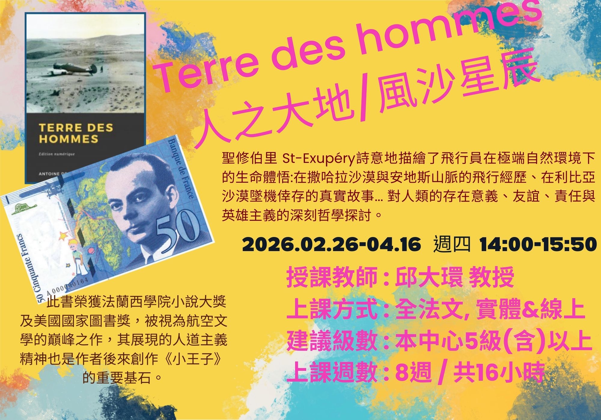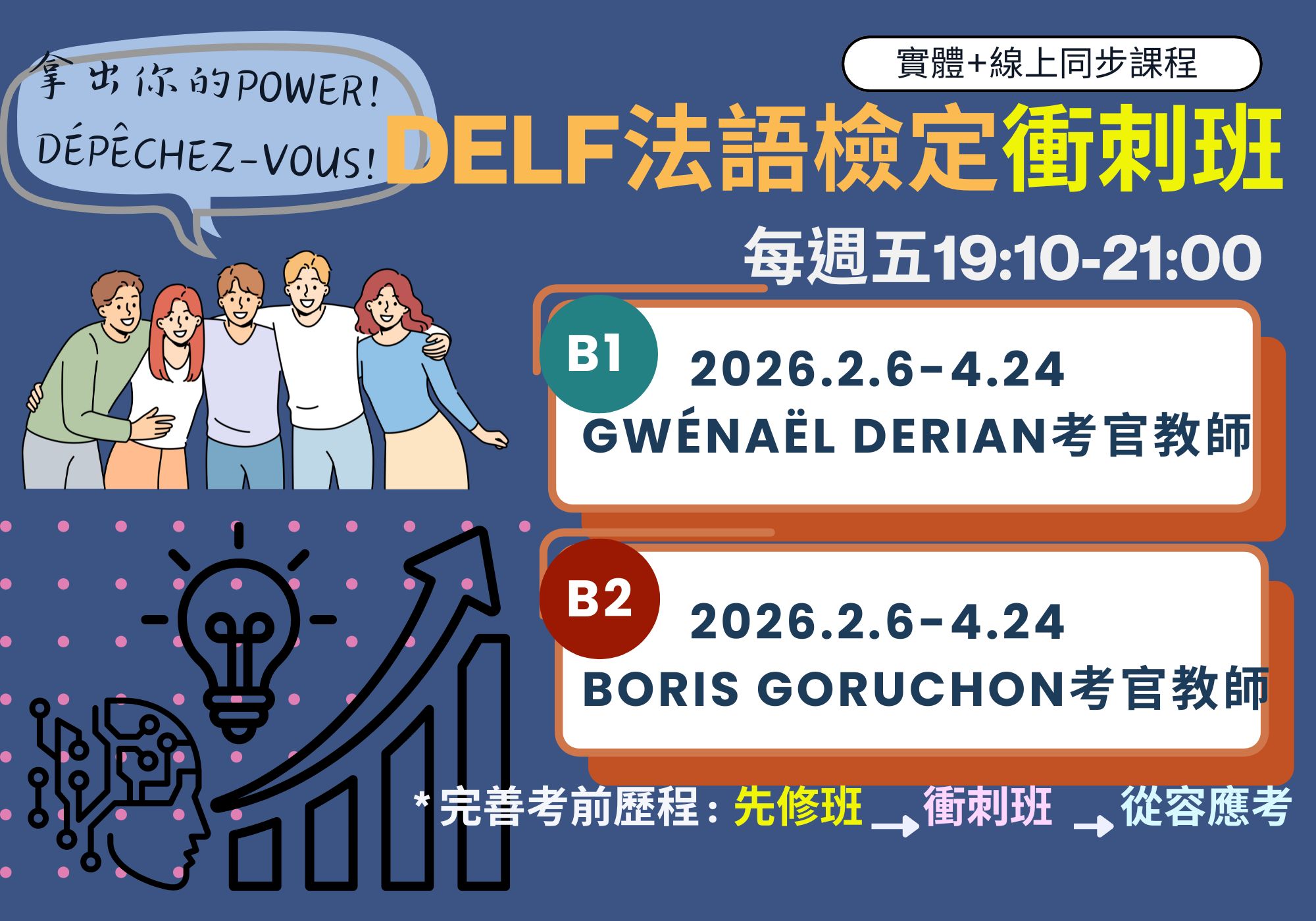 ※本中心課程分為實體上課、線上上課或實體線上同步上課,報名前敬請確認各班次之上課方式(請參考各時段課表標示)。 平日法語班(每週6H)近期開課班次 【寒假密